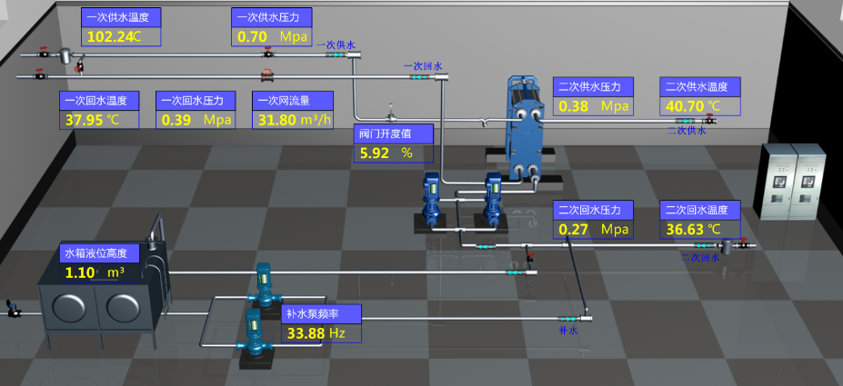 根據室外氣象條件建立不同的供暖基礎需求模型,獲取實時室外溫度、典型用戶室內溫濕度、氣象局數據、一次二次管網參數,自動調節二次循環水流量,保證用戶側總熱量滿足末端需求,整個運行過程根據板換一次側和二次側供回水溫度情況,實時分析換熱器的換熱效率,保證換熱器在最佳效率區間運行。